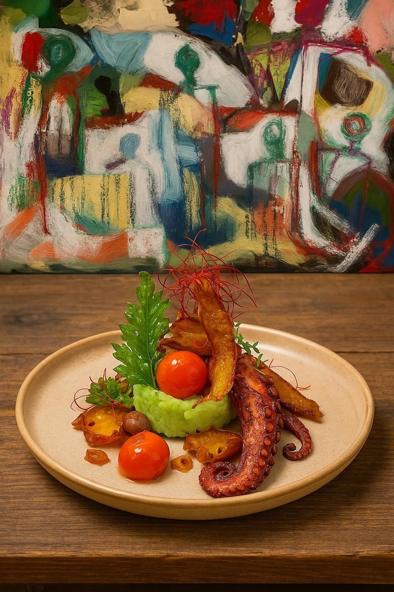 Arte e cucina insieme — Oltre alla cena, offriamo la possibilità di arricchire la serata con una selezione delle nostre opere, creando un dialogo tra sapori, forme e colori.